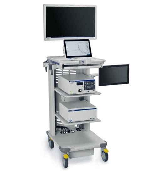 video system features a built-in light system that allows a clinician to switch between white light, stroboscopy mode available via strobe upgrade and Narrow Band Imaging (NBI) technology at the touch of one button, allowing for enhanced visualization to detect, characterize and treat ENT diseases such as vocal fold polyps and glottic cancer and urological diseases such as non-muscle invasive bladder cancer.
