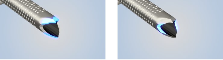 Dual-Beveled Raptor Tip, with its multi-dimensional cutting surfaces, enables the collection of larger, intact tissue samples while preserving cellular architecture through precise tissue execution1 for procedural efficiency. The outer distal cutting surface forms fine edge to support smooth tissue puncture and the inner proximal cutting surface minimizes tissue escape1.